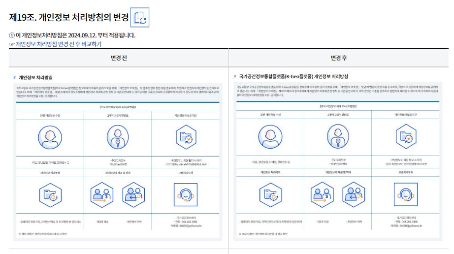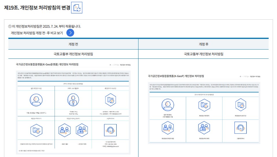 - 개인정보 처리방침 개정 전·후 비교 보기