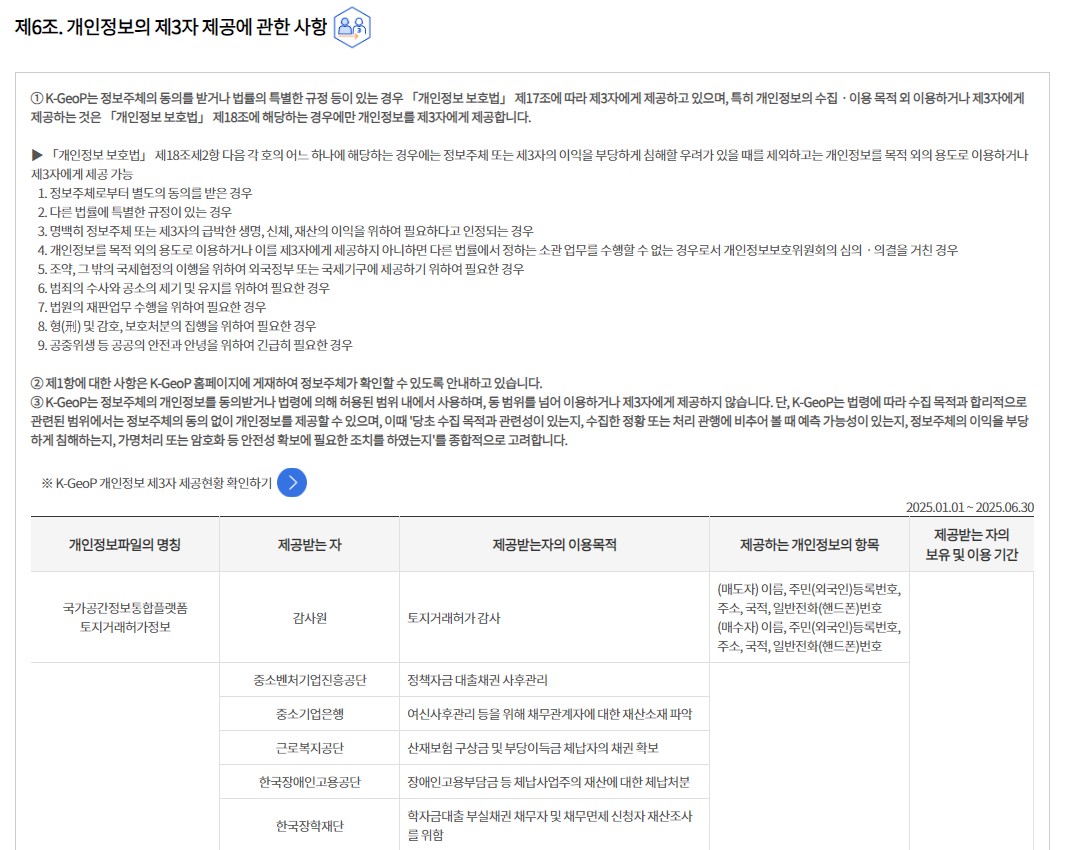 - ※ K-GeoP 개인정보 제3자 제공현황 확인하기