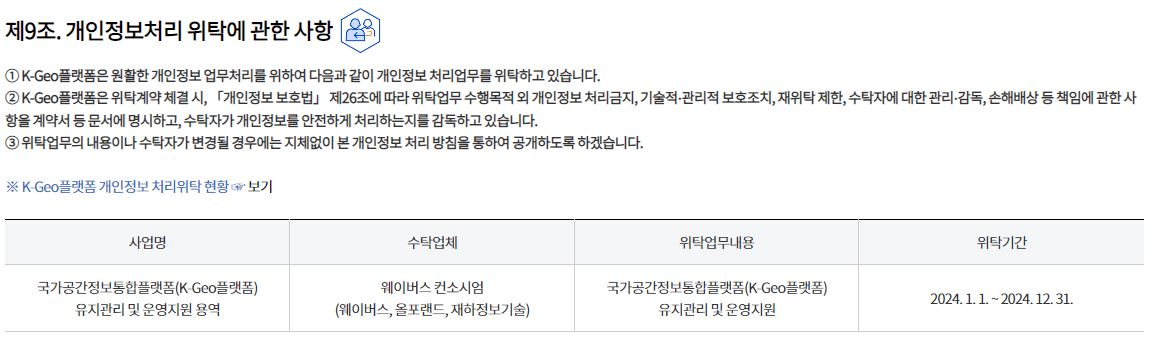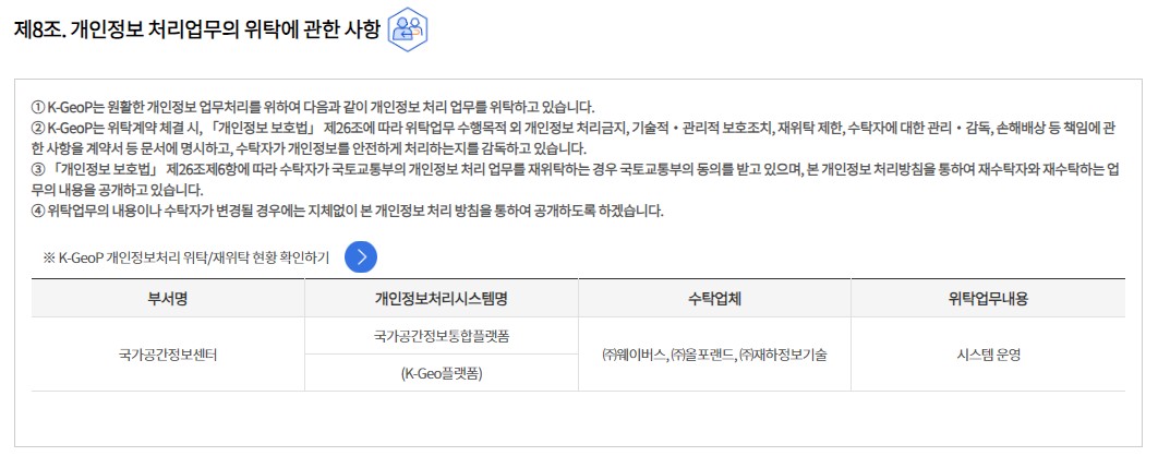 - ※ K-GeoP 개인정보처리 위탁/재위탁 현황 확인하기