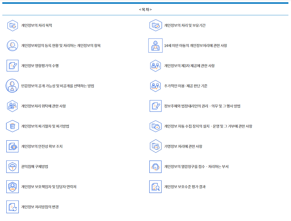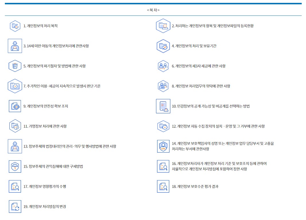 제16조. 개인정보처리자가 개인정보 처리 기준 및 보호조치 등에 관하여 자율적으로 개인정보 처리방침에 포함하여 정한 사항