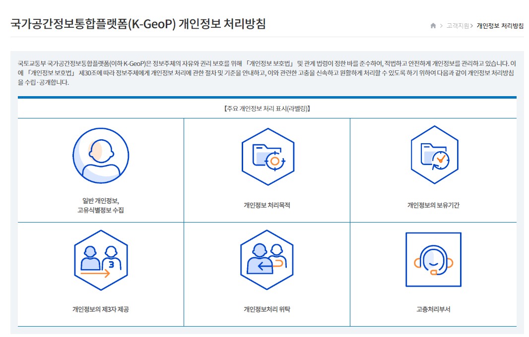 - ② 제1항에 대한 사항은 K-GeoP 홈페이지에 게재하여 정보주체가 확인할 수 있도록 안내하고 있습니다.