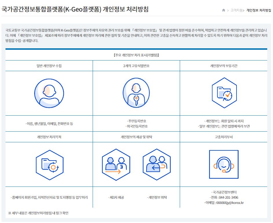 | 개인정보 보호책임자 | 국토교통부 국토도시실 국가공간정보센터 |